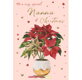 Nanna Christmas Card - Luxury - Poinsettia Plant - Gold Leaf - Nan
