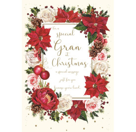 Gran - Christmas Card - Luxury - Flower Border - Square