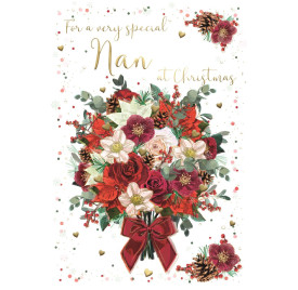 Nan Christmas Card - Luxury - Bouquet Christmas Flowers with Red Bow