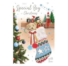 Special Boy Christmas Card - Luxury - Teddy In Blue Stocking - Elf