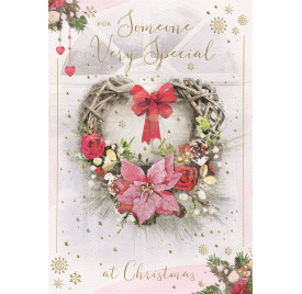 Someone Very Special Christmas Card - Luxury Wooden Wreath - Poinsettia