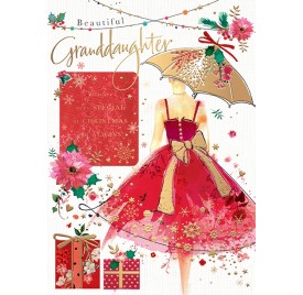 Granddaughter - Christmas - Lady in Red Dress & Gold Umbrella