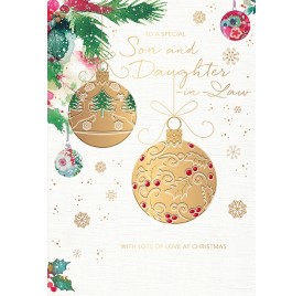 Son and Daughter-in-Law - Christmas - Gold & Floral Baubles