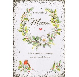 Mother - Christmas - Floral Wreath - Robin - Just for You