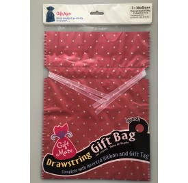 Single Drawstring Gift Bag - Medium - Polka Dot Pink
