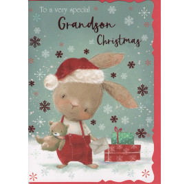Grandson - Christmas - Bunny in Santa Hat with Letter