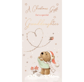 Granddaughter Christmas Money Gift Wallet - Barley Bear - Poinsettia Pot
