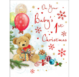 Baby's First Christmas - Bear with Red Bow - Red Foil