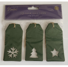 Christmas Gift Tags - 12 Pack - Dark Green - Pre - Strung - Die Cut