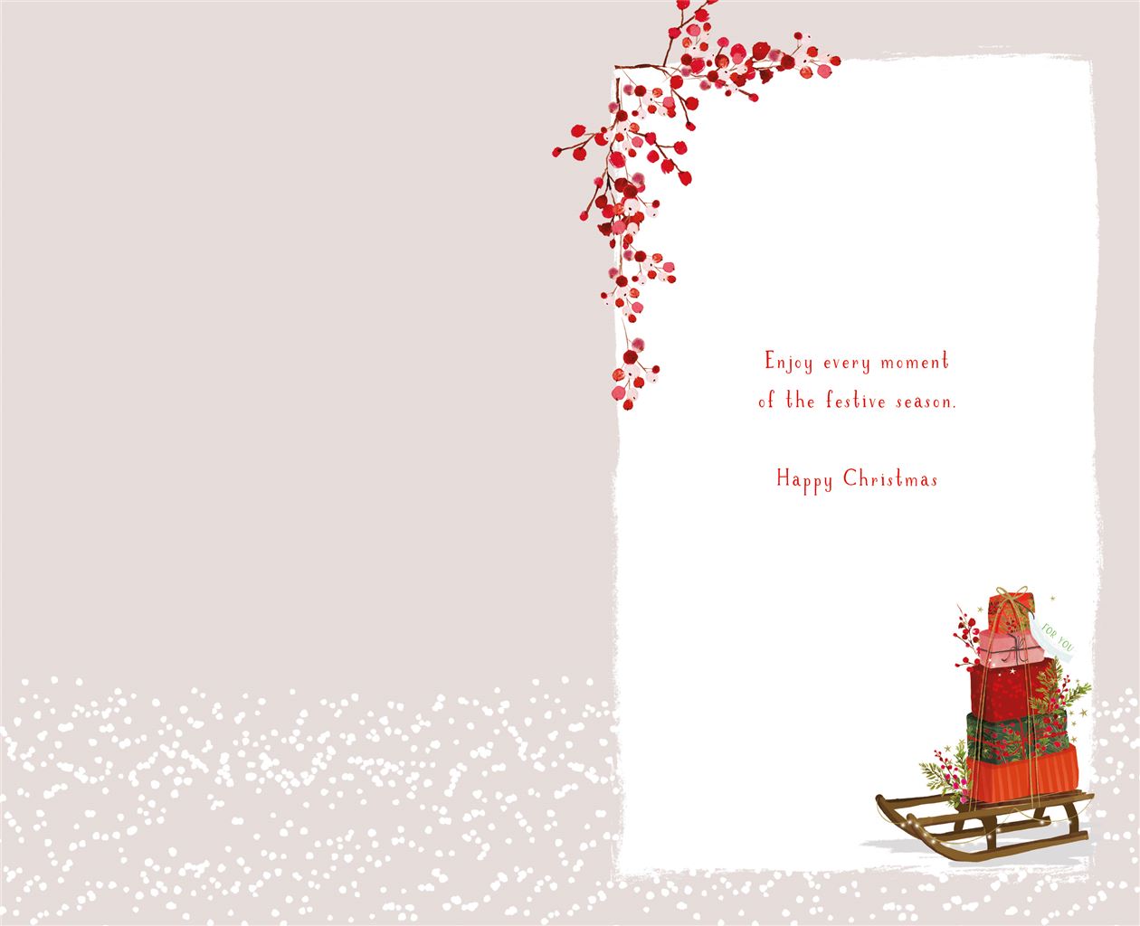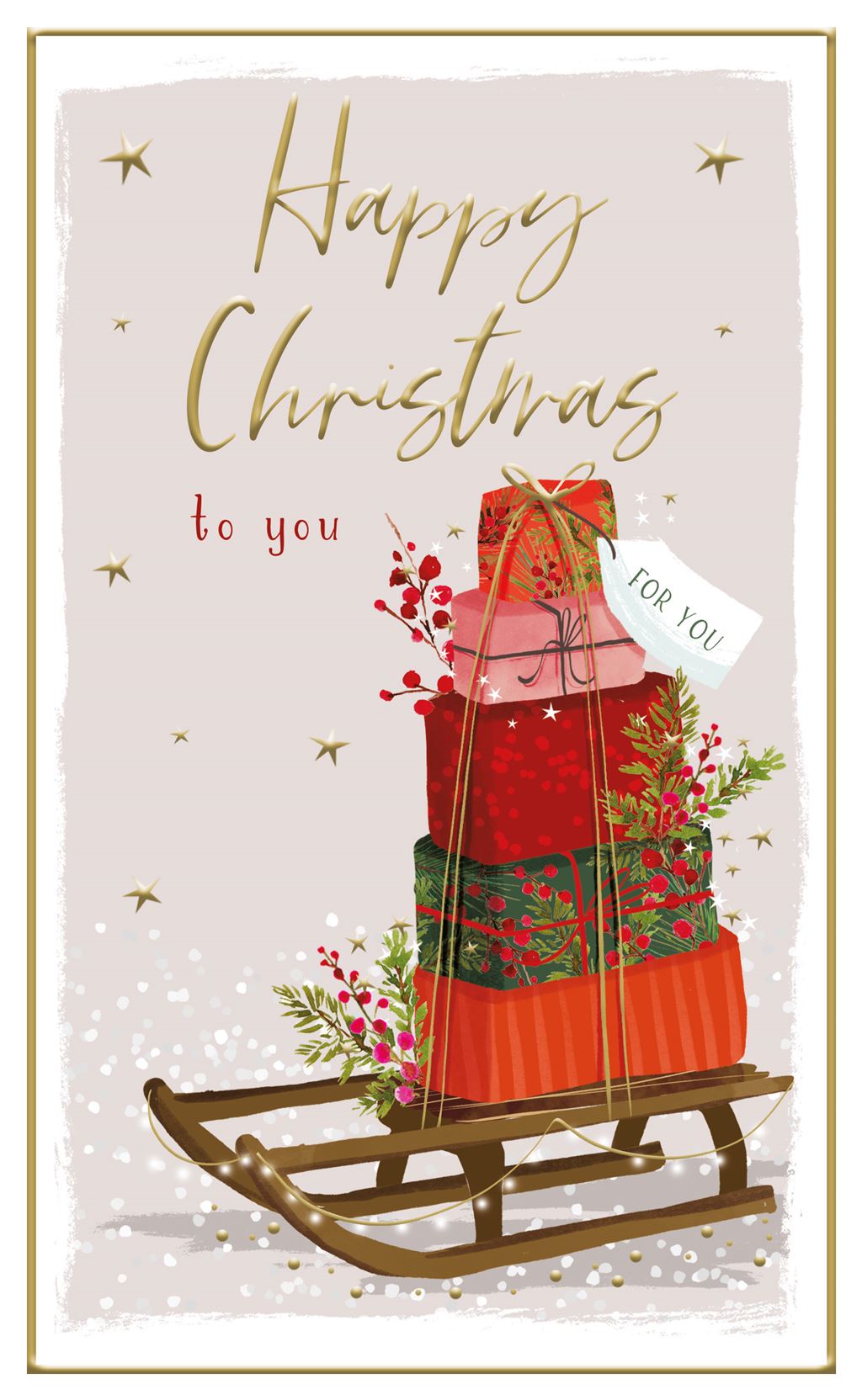 Happy Christmas - Open Card - Sleigh with Presents - Red Foil