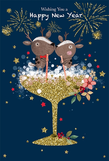 Happy New Year - Reindeer's in a Cocktail - Glitter