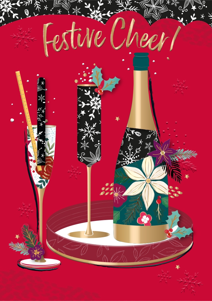 Open Christmas - Festive Cheer! - Bottle and Glasses