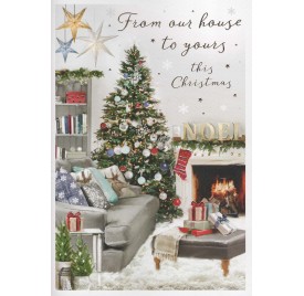 Father - Christmas - Blue - Christmas Tree and Fireplace
