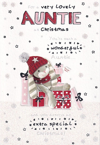 Verse reads: Front... You're such a wonderful Auntie and you deserve an extra special Christmas Inside... Love you lots and lots!