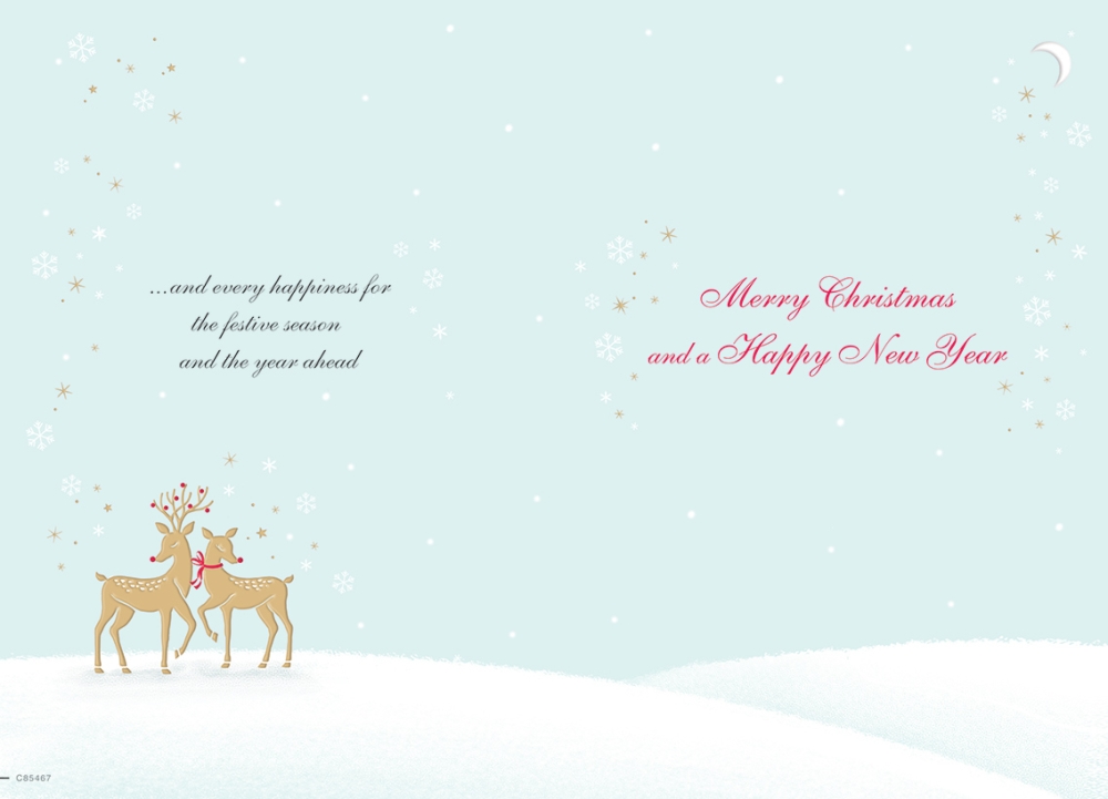 Verse reads: Front - Wishing you both a wonderful Christmas filled with all your favourite things... Inside - ...and every happiness for the festive season and the year ahead Merry Christmas and a Happy New Year