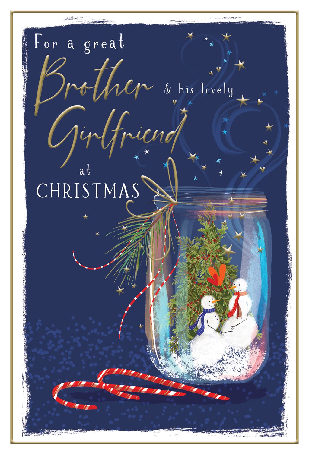 Brother and Girlfriend - Snowmen - Mason Jar - Candy Canes - Navy