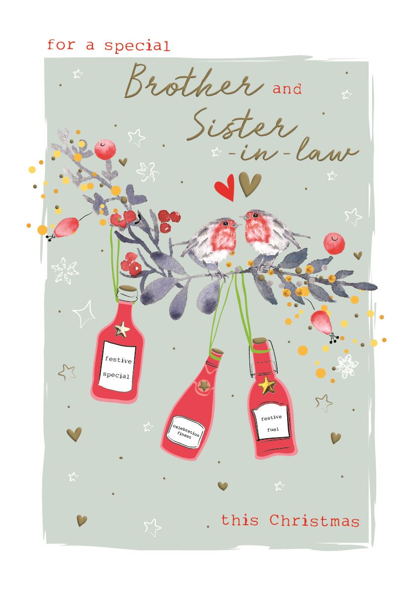 Brother and Sister-in-law Christmas Card - Luxury Festive Robins and Bottles