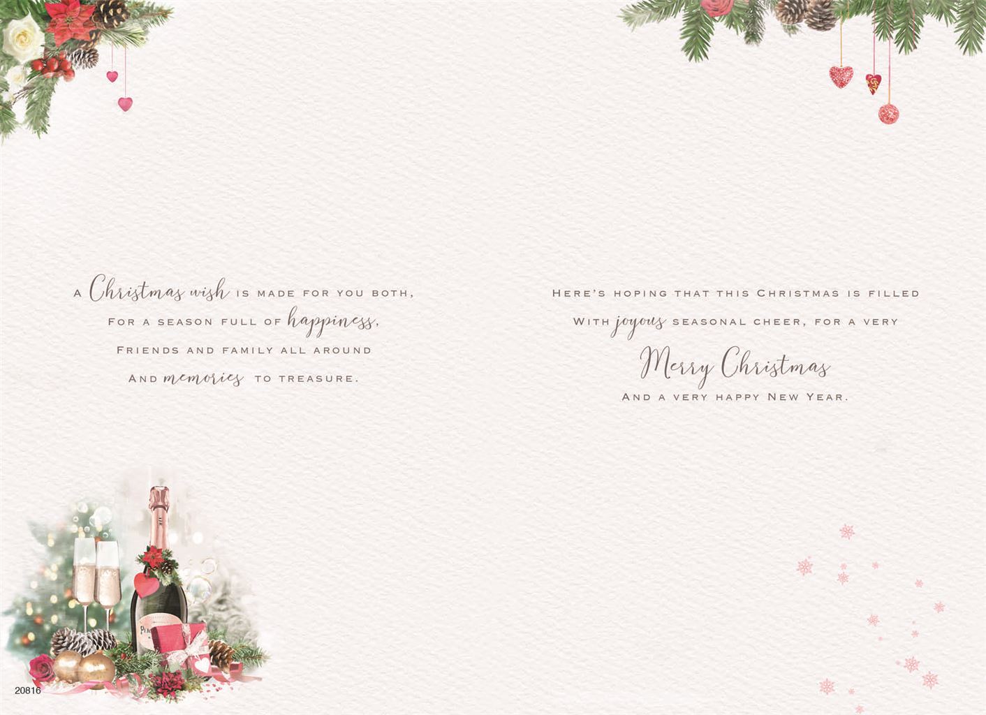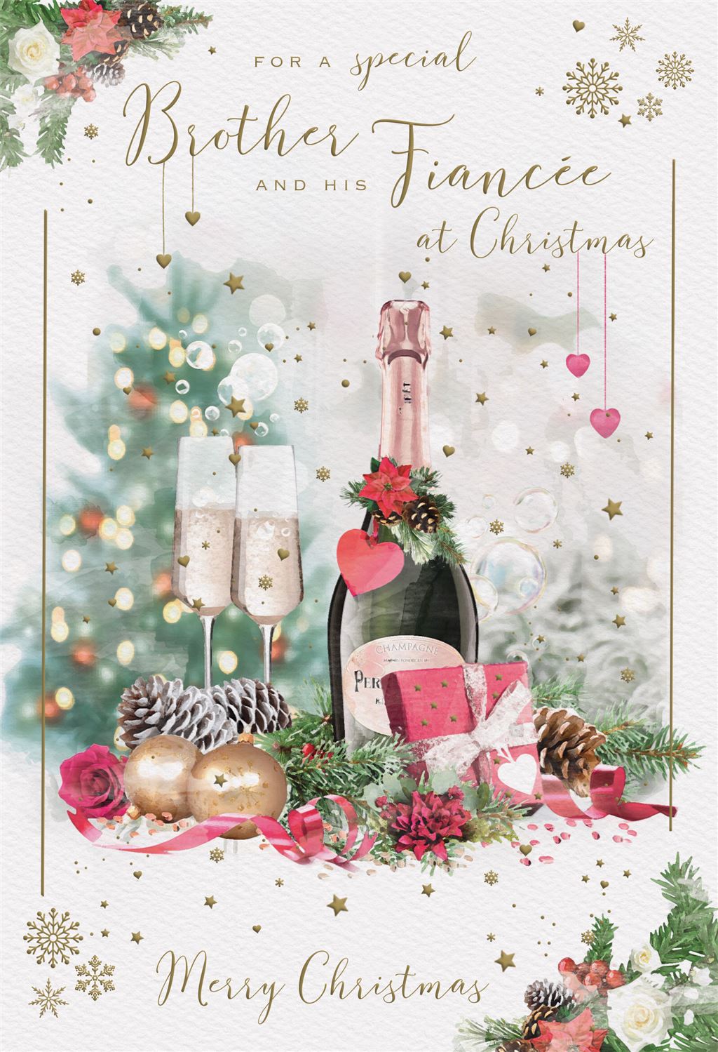 Brother & Fiancee - Luxury Christmas Card - Champagne Bottle - Glasses - Cones