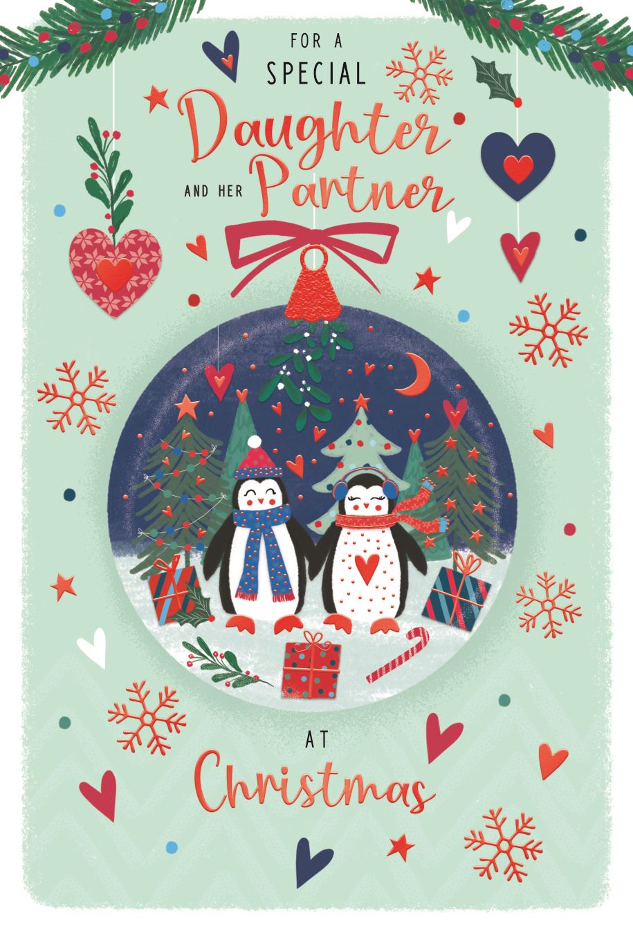 Daughter and Partner Christmas - Penguins - Snow Scene - Bauble