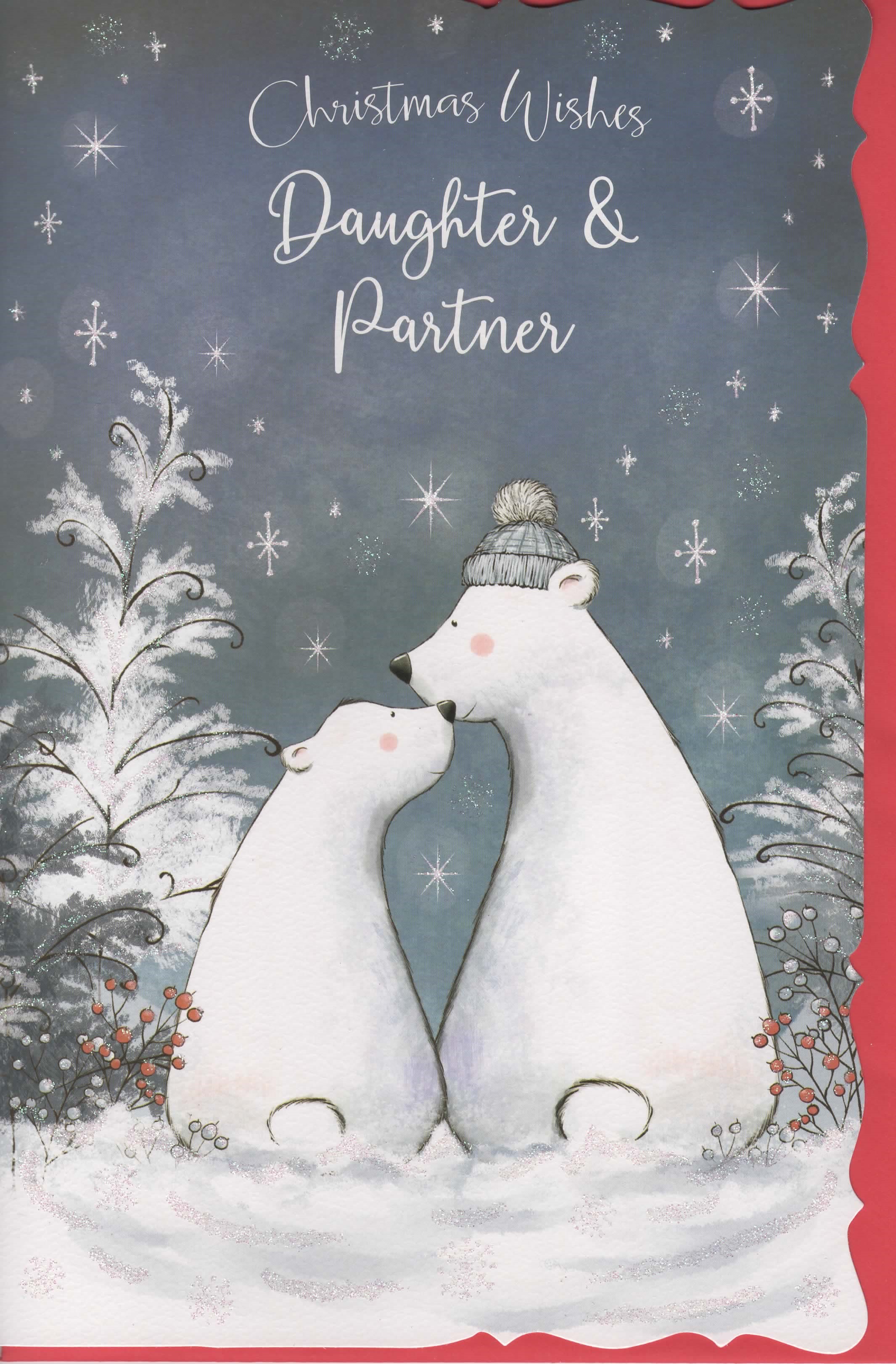 Verse: Though it may be cold outside hope Christmas warms you through, to make the season wonderful for the two of you. With love Daughter & Partner