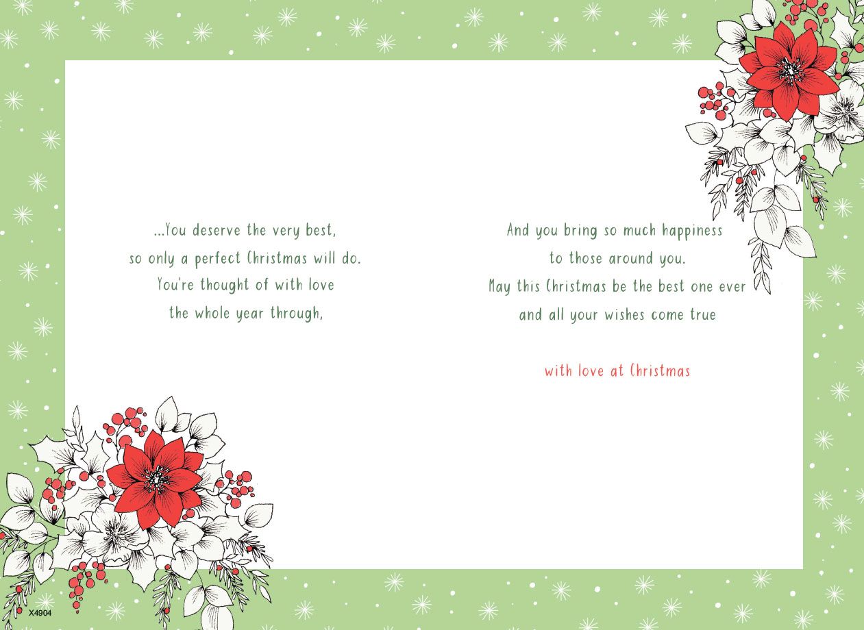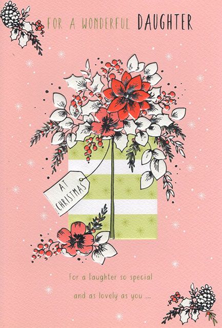 Verse reads: Front - For a Daughter so special and as lovely as you... Inside - ...You deserve the very best, so only a perfect Christmas will do. You're thought of with love the whole year through, And you bring so much happiness to those around you. May this Christmas be the best one ever and all your wishes come true with love at Christmas
