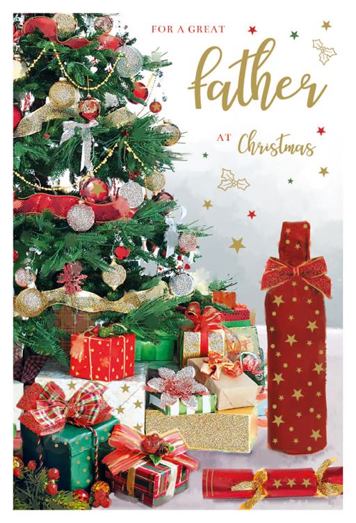 Father - Christmas Card - Luxury - Drinks Bottle - Presents Under Tree