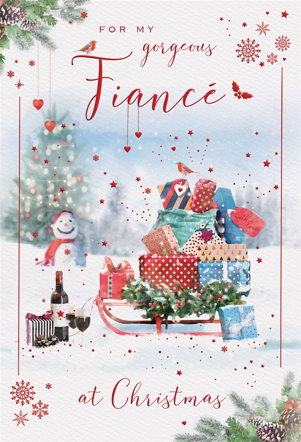 Fiance Christmas Card - Luxury - Sleigh with Presents - Snowman