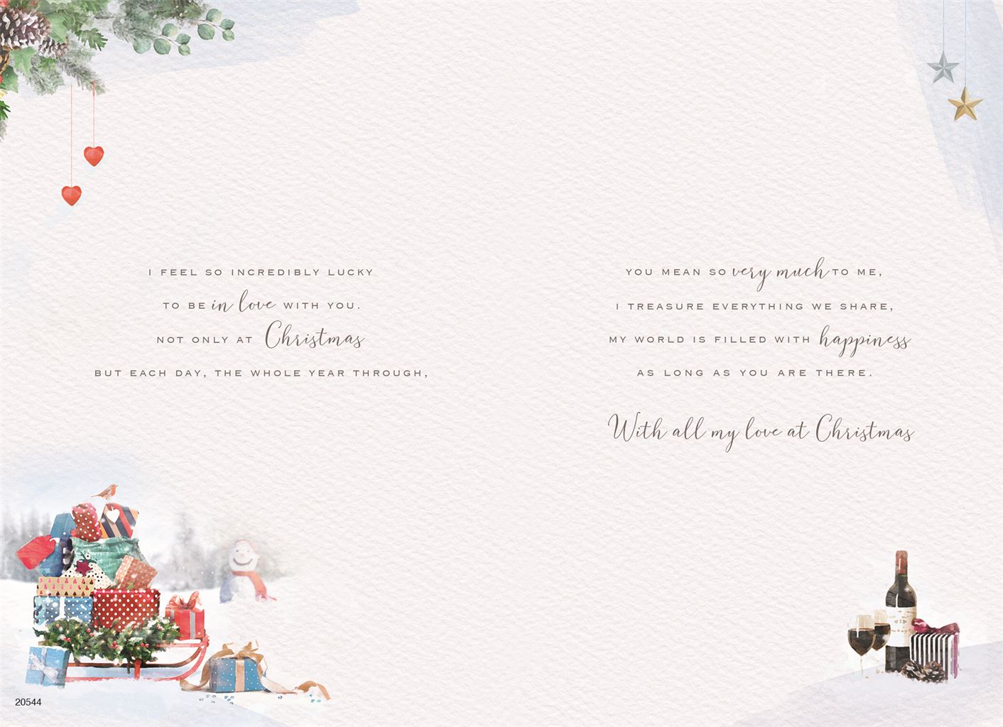 Verse: I feel so incredibly lucky to be in love with you, not only at Christmas but each day, the whole year through, you mean so very much to me I treasure everything we share, my world is filled with happiness as long as you are there, with all my love at Christmas