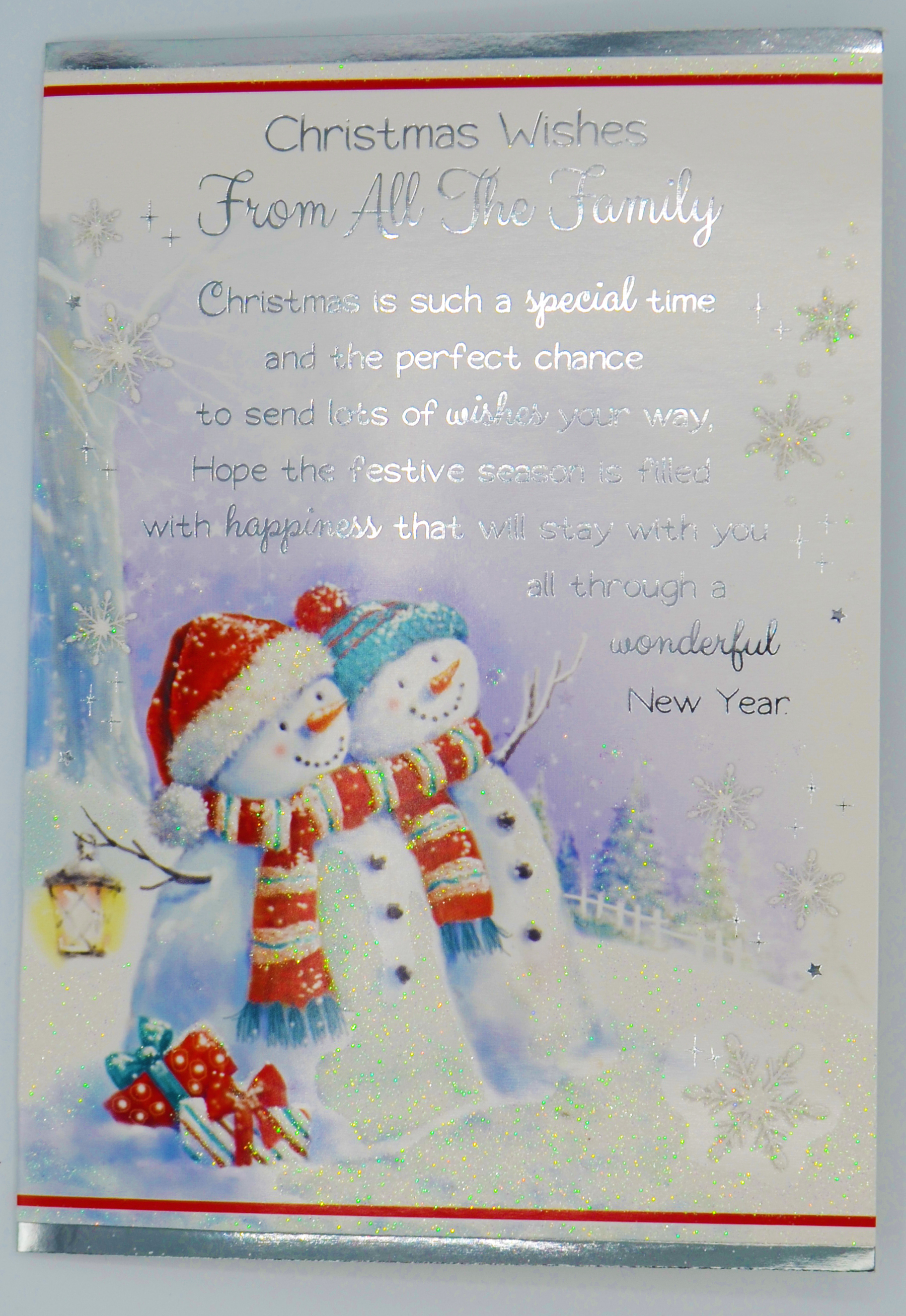 Verse reads: Front - Christmas is such a special time and the perfect chance to send lots of wishes your way, Hope the festive season is filled with happiness that will stay with you all through a wonderful New Year. Inside - This message is filled with special thoughts and lots of wishes too, Hope you'll have a christmas that's wonderful for you. Happy Christmas