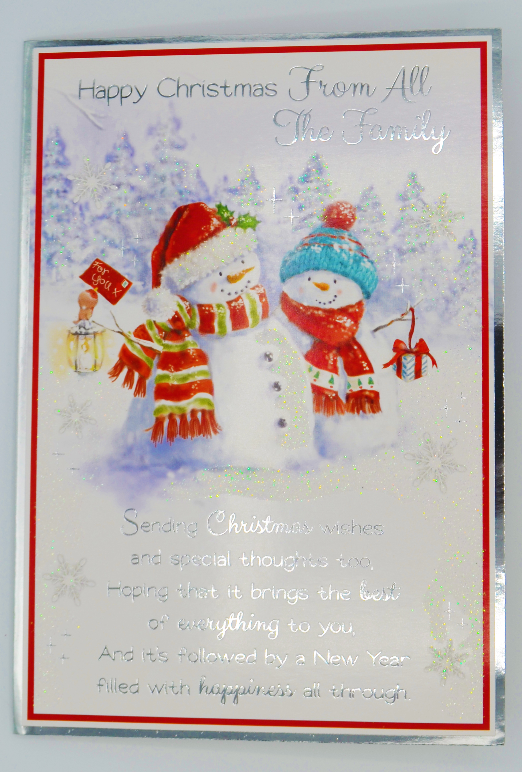 Verse reads: Front - Sending Christmas wishes and special thoughts too, Hoping that it brings the best of everything to you, And it's followed by a New Year filled with happiness all through. Inside - This comes to say you're thought of so much throughout the year, And wished lots of happiness now Christmastime is here. Christmas wishes