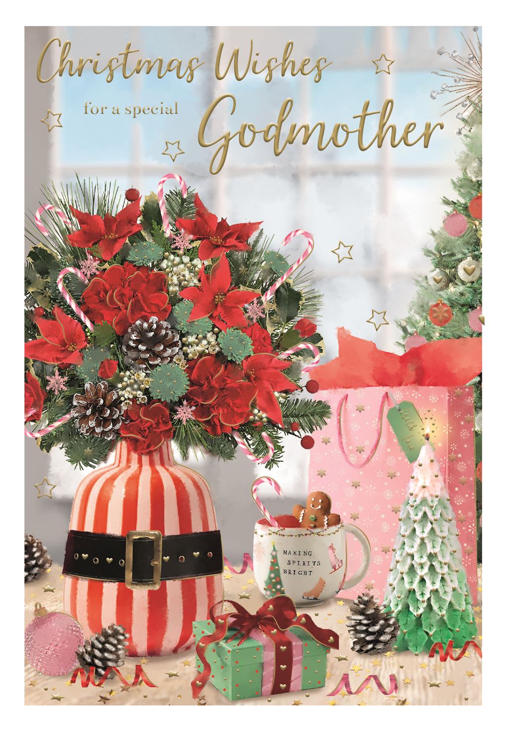 Godmother Christmas Card - Vase Flowers - Gift bag - Gingerbread Cup