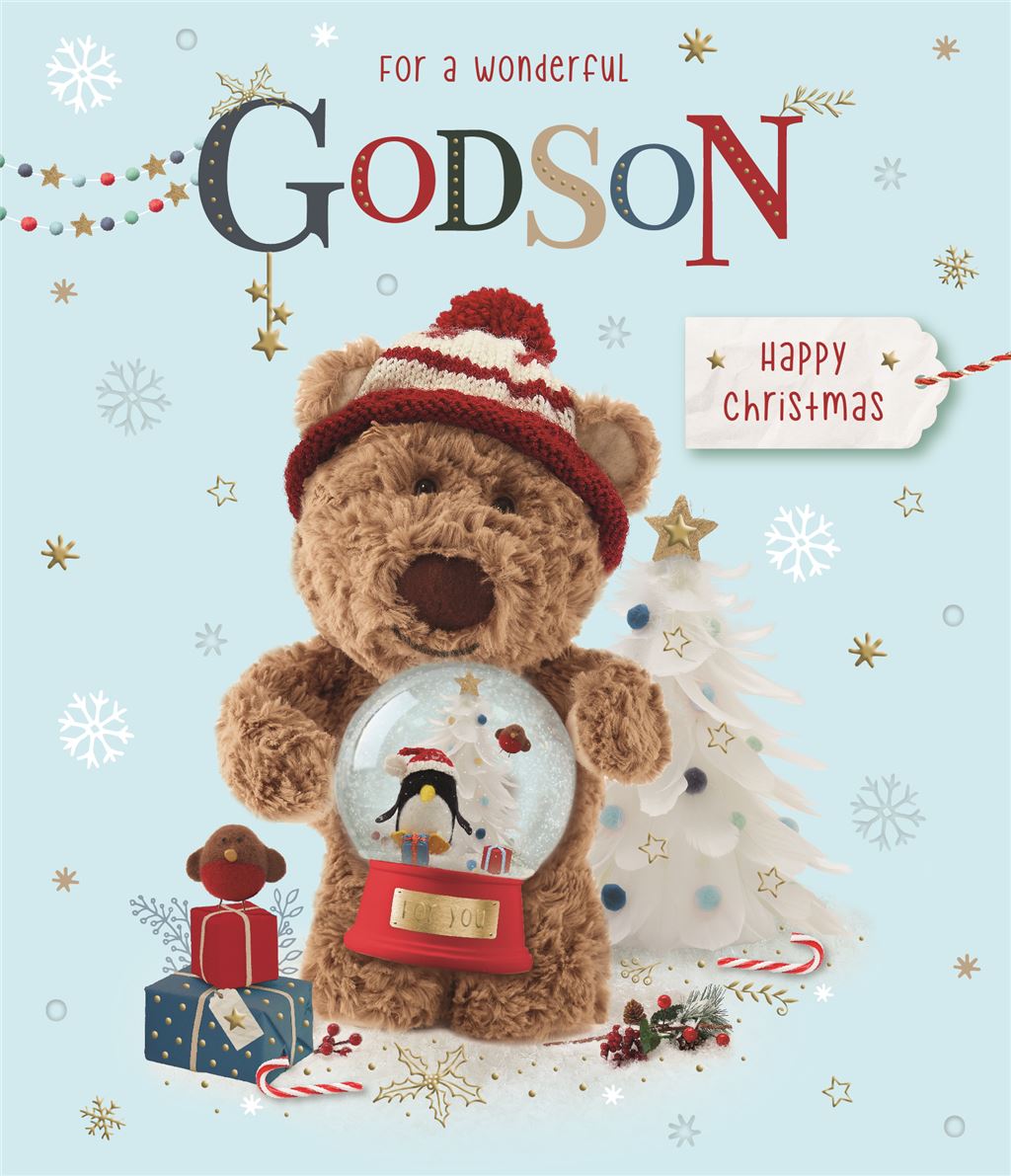Christmas Godson - Card - Barley Bear - Snowglobe