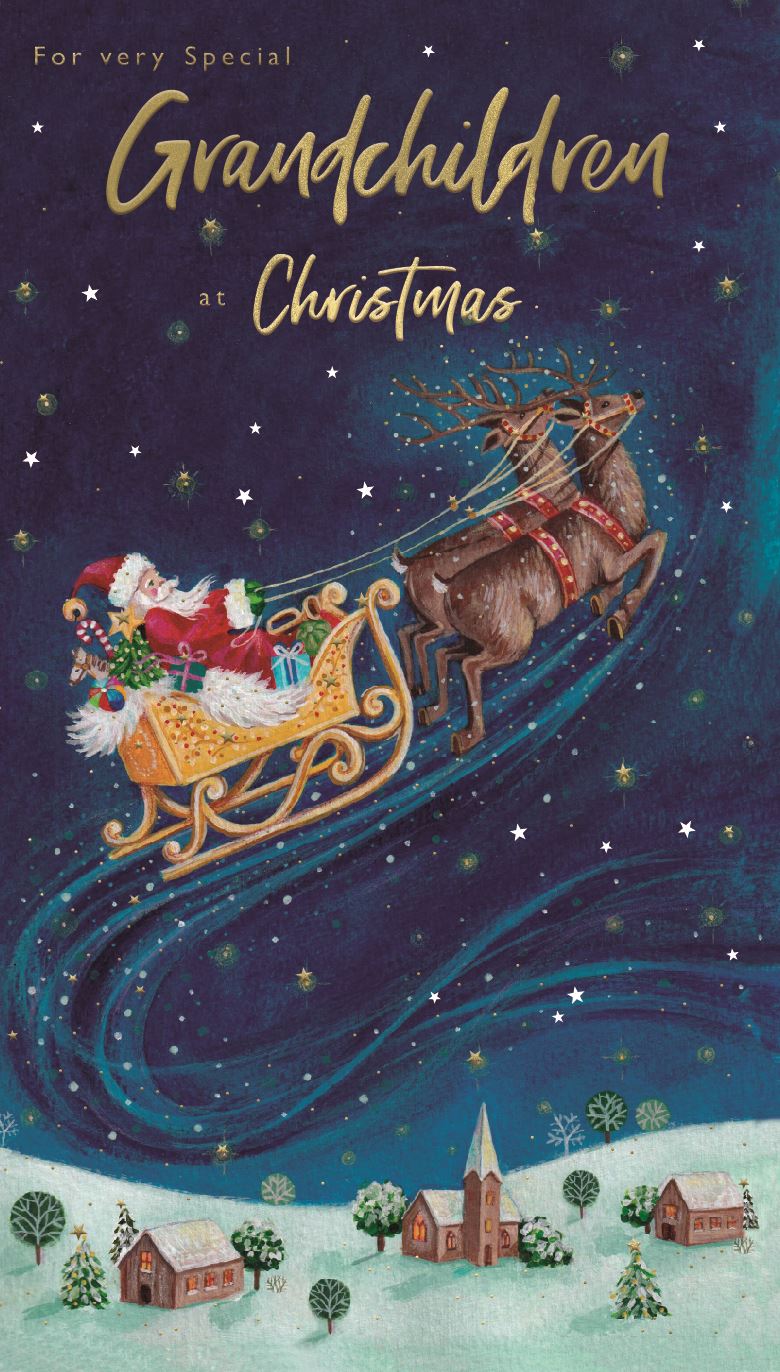 Grandchildren Christmas Card - Luxury - Santa Claus with Sleigh