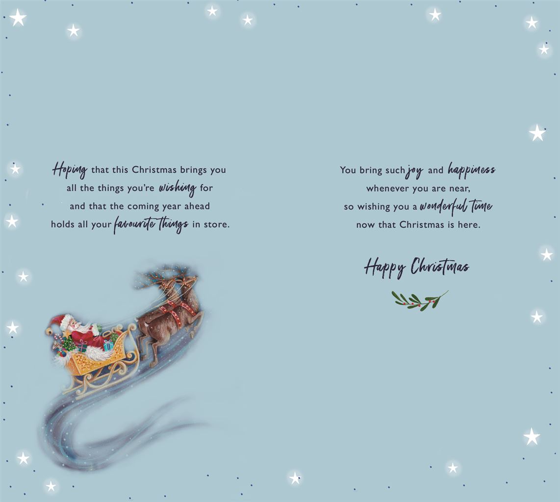 Verse: Hopingthat this Christmas brings you all the things you're wishing for and that the coming year ahead holds all your favourite things in store. You bring such joy and happiness whenever you are near, so wishing you a wonderful time now that Christmas is here. Happy Christmas