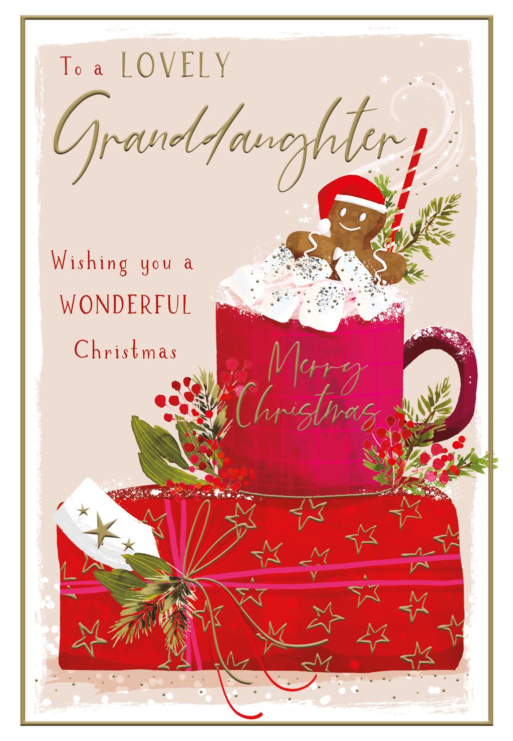 Granddaughter - Christmas Card - Luxury - Gingerbread Men with Marshmallows and a Mug