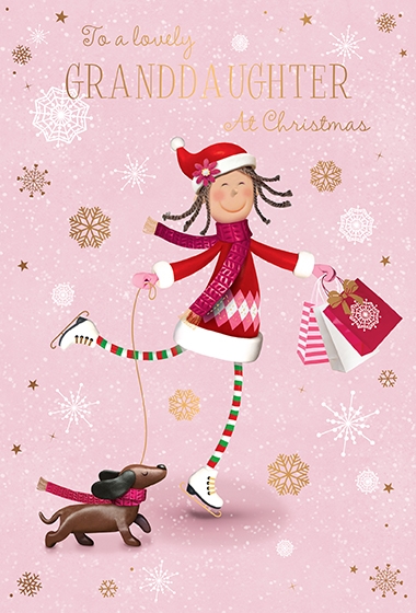 Granddaughter - Christmas - Girl Ice Skating with Dog