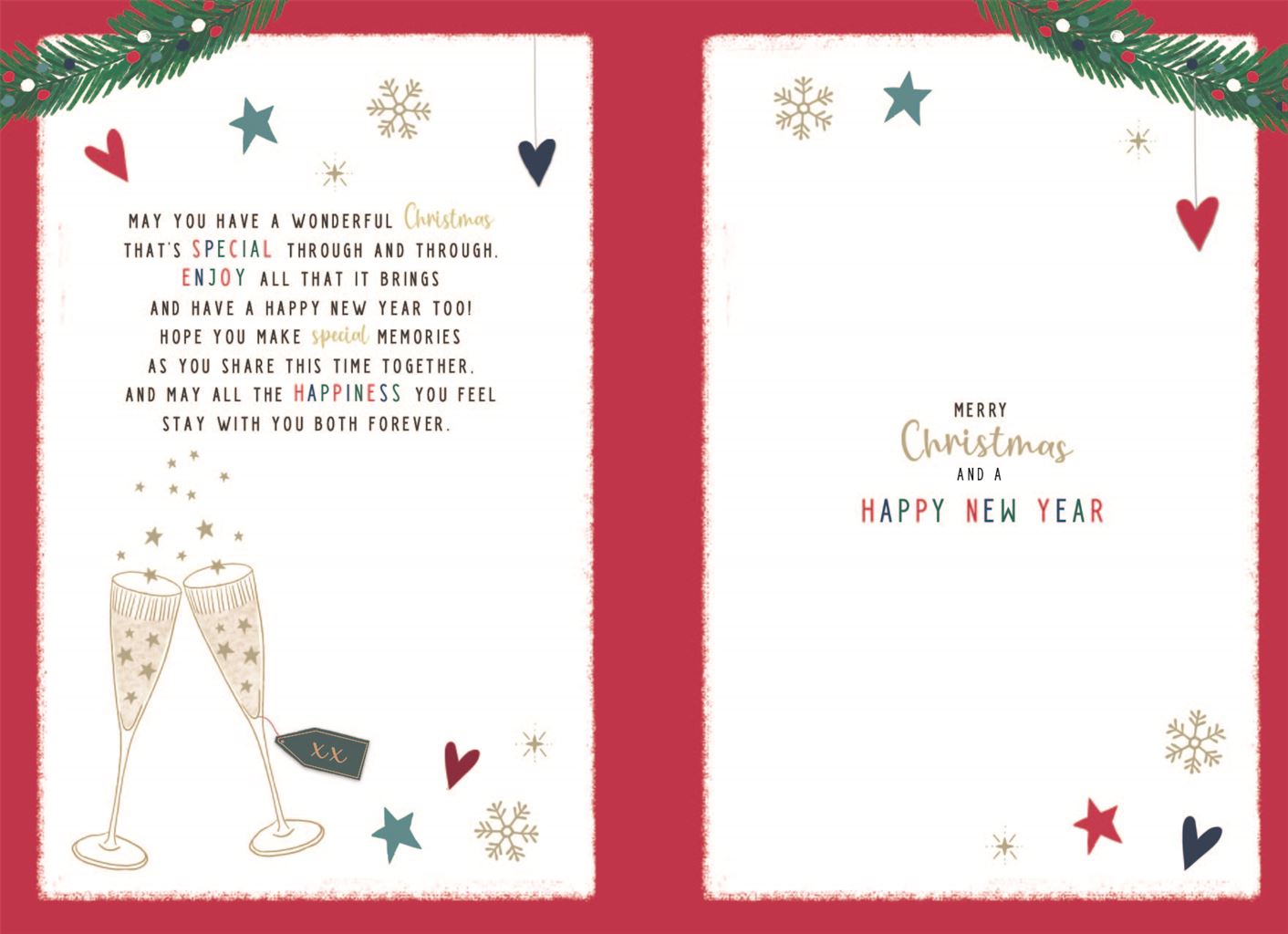 Verse: May you have a wonderful Christmas that's special through and through enjoy all that it brings and have a happy new year too! Hope you make special memories as you share this time together. And may all the happiness you feel stay with you both forever