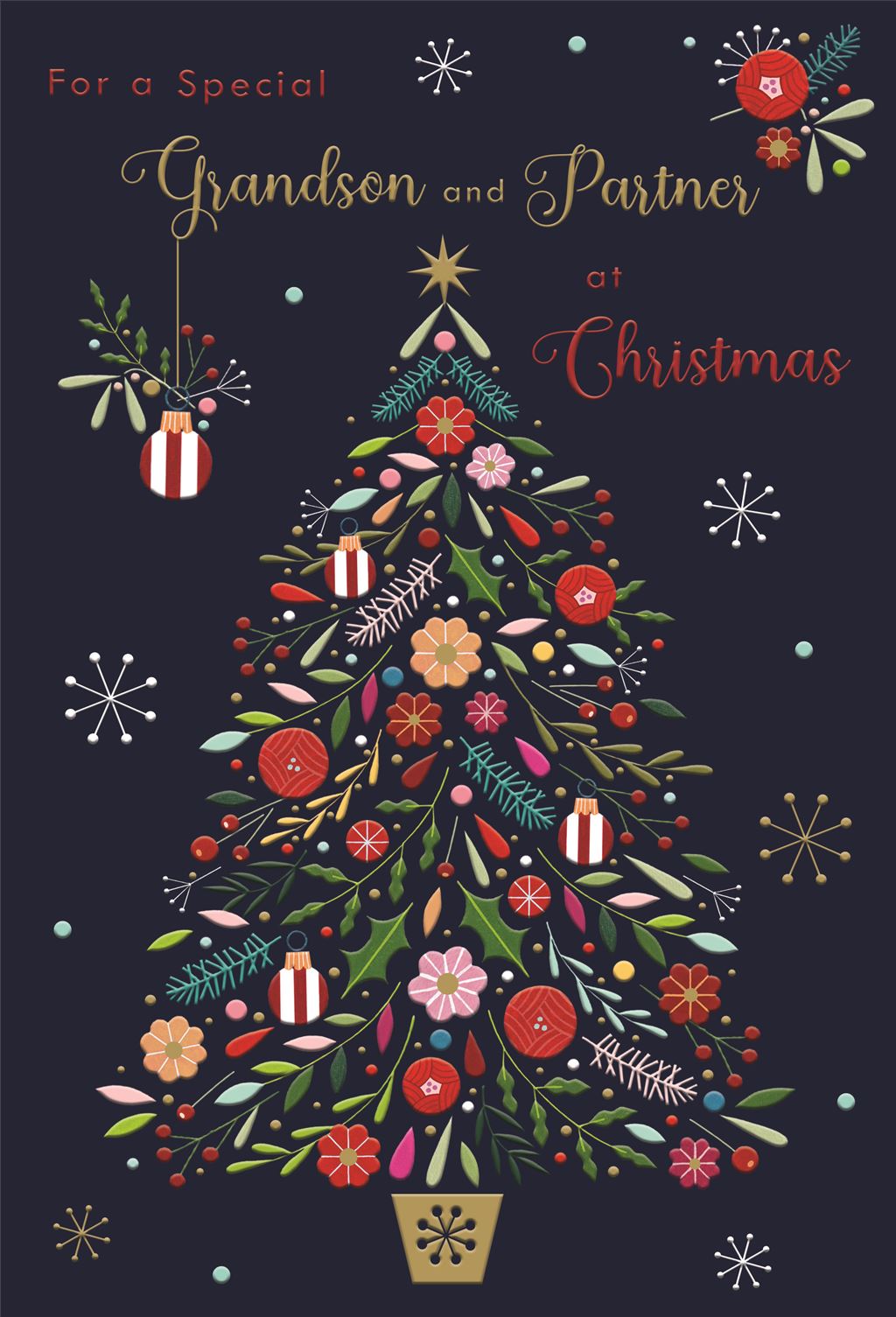 Grandson and Partner Christmas Card - Luxury - Full Verse - Christmas Navy Tree