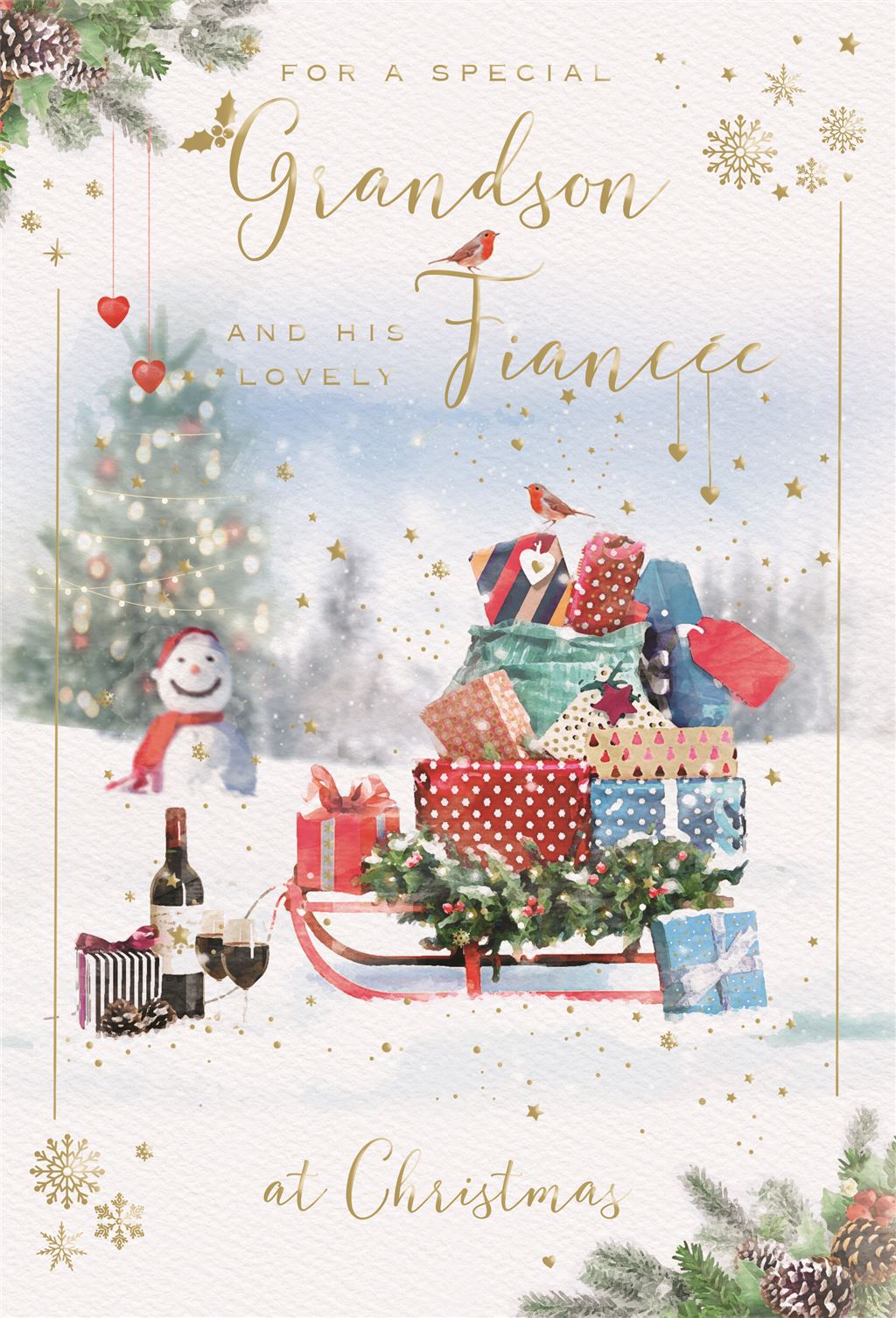Grandson & Fiancee Christmas Card - Sleigh - Presents - Luxury