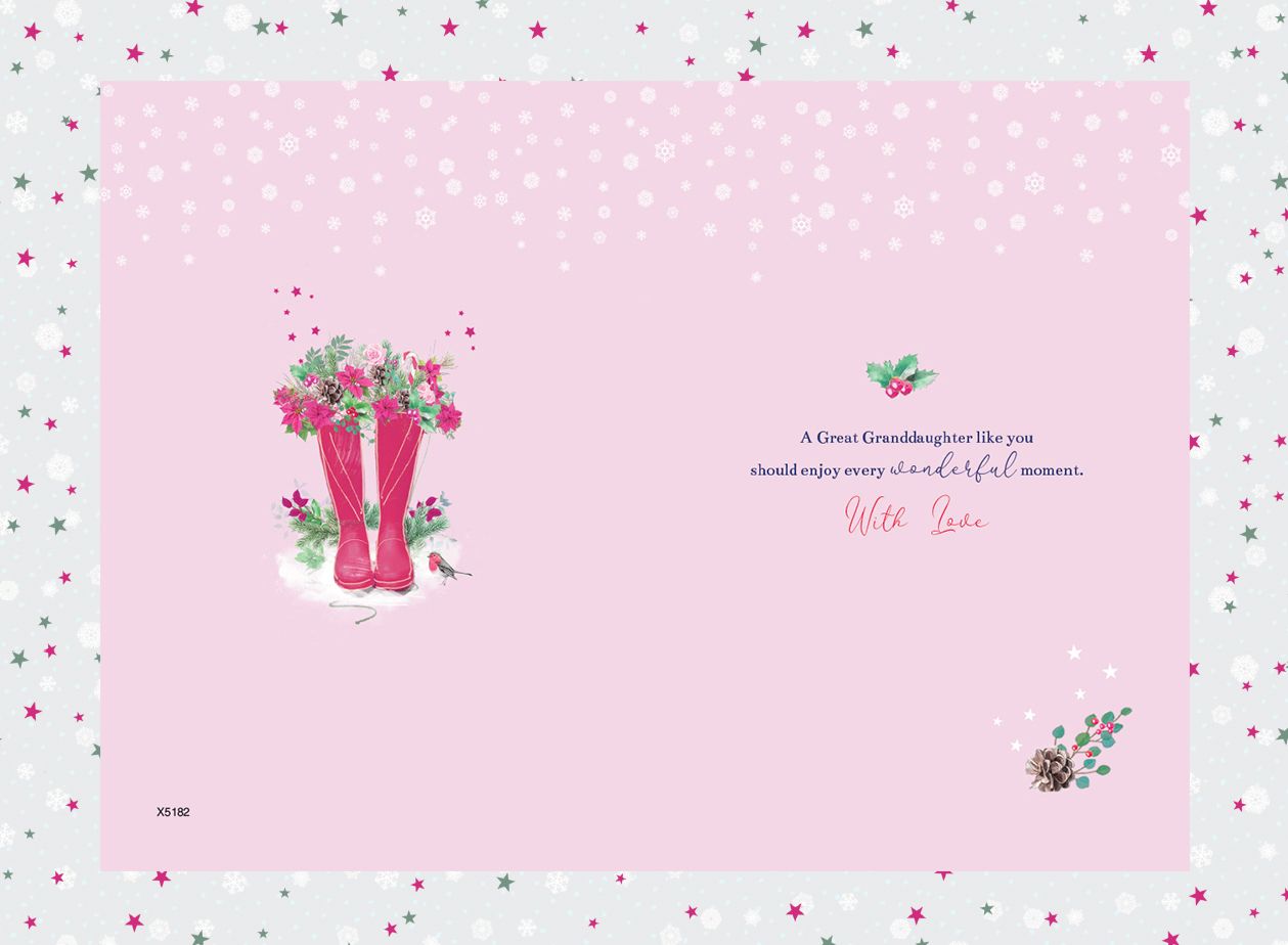Verse reads: A Great Granddaughter like you should enjoy every wonderful moment. Happy Christmas with love
