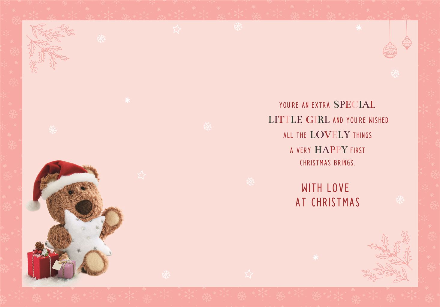 Verse: You're an extra special little girl and you're wished all the lovely things a very happy first Christmas brings