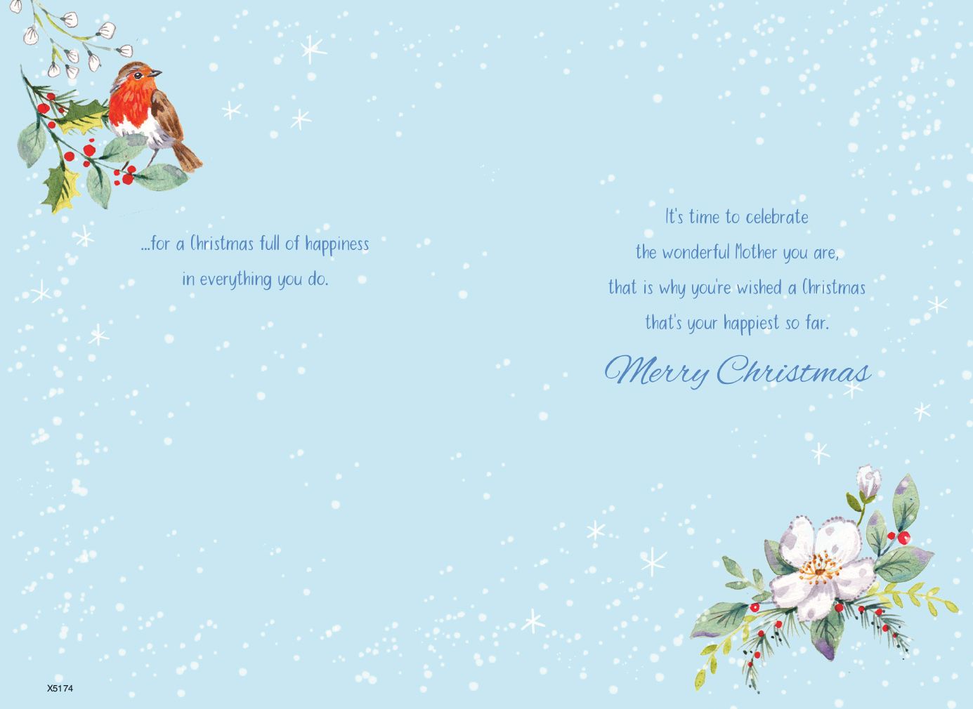 Verse reads: Front - You're so special in so many ways so a wish is made for you... Inside - ...for a Christmas full of happiness in everything you do. It's time to celebrate the wonderful Mother you are, that is why you're wished a Christmas that's your happiest so far. Merry Christmas