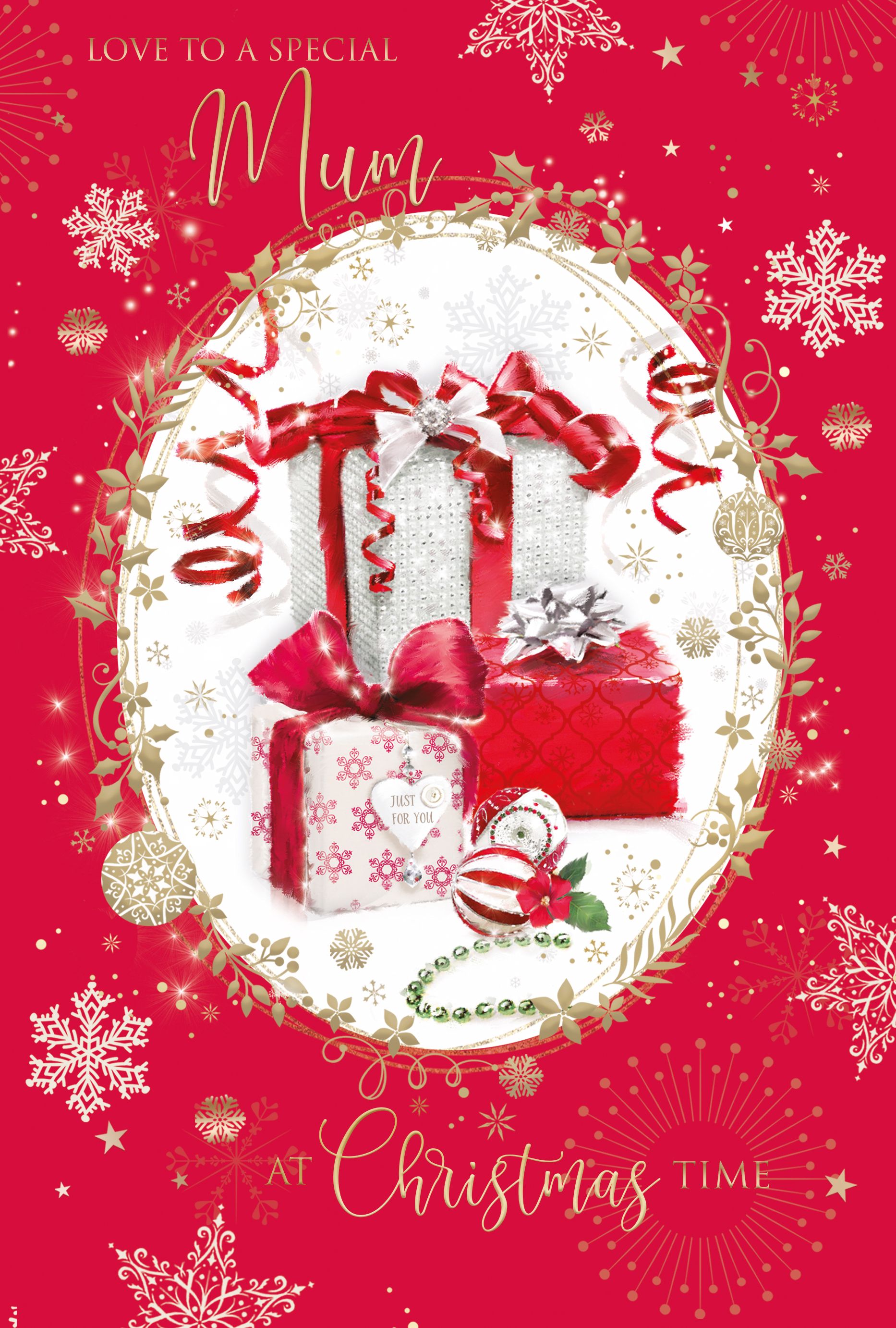 Verse reads: You make each Christmas really happy every year, You work a little magic every time the day draws near. You make sure everyone is having a wonderful time, A thoughtful, kind and loving Mum and i'm so glad you're mine. Sent with lots of love at Christmas and always