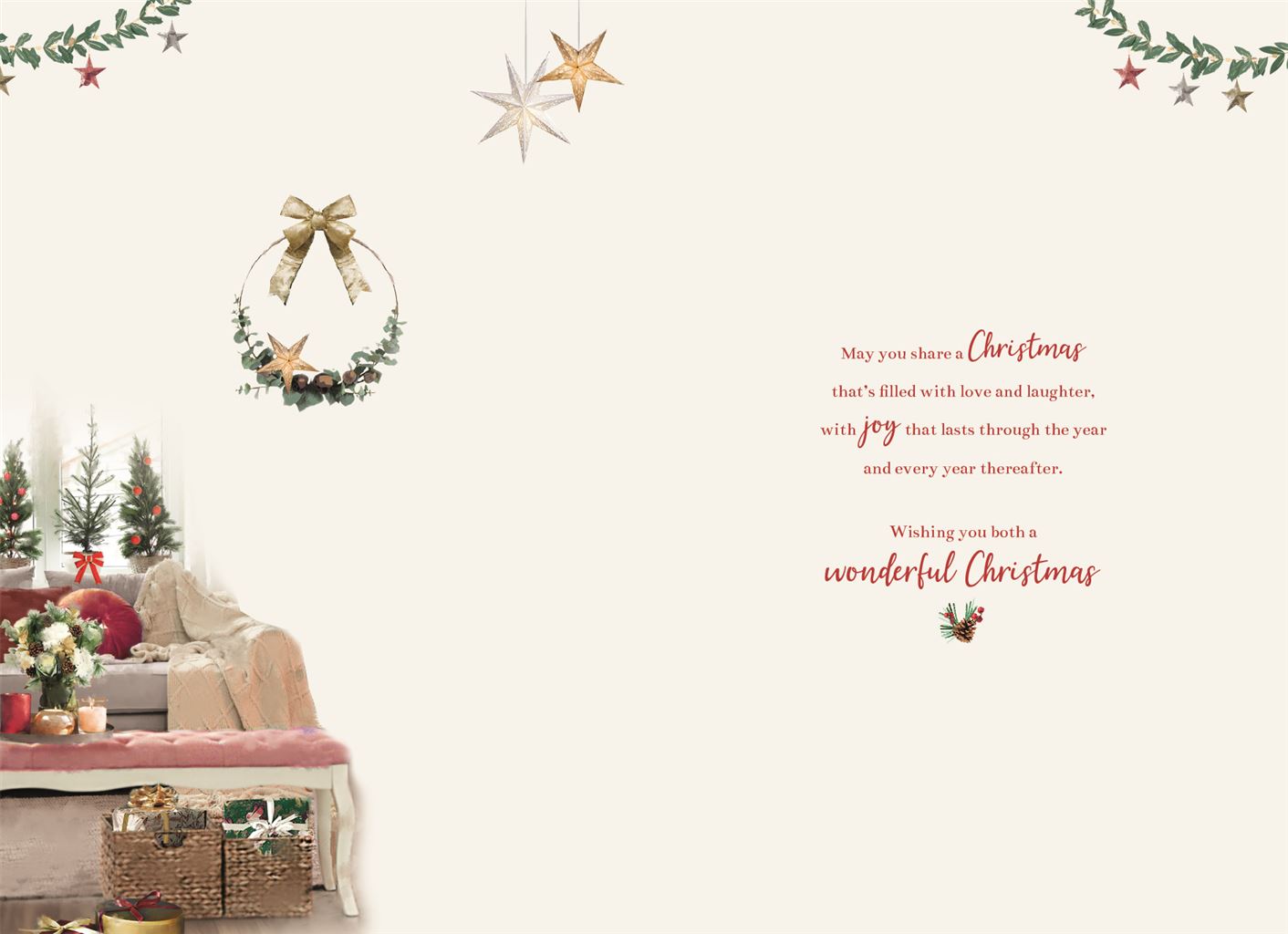 Verse: May you share a Christmas that's filled with love and laughter, with joy that lasts through the year and every year thereafter. Wishing you both a wonderful Christmas