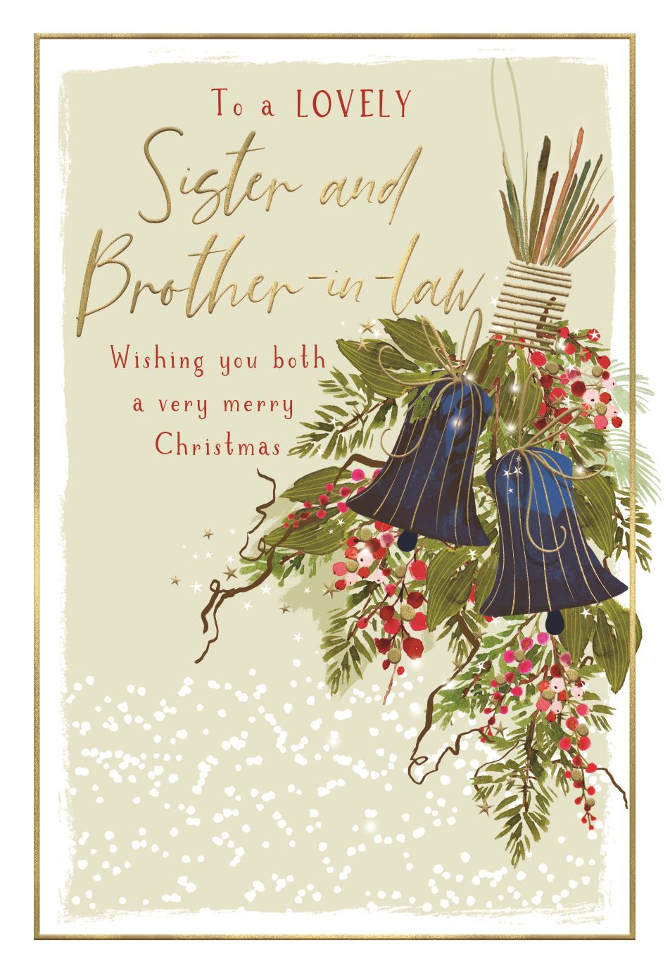 Sister and Brother in law - Christmas Card - Luxury - Blue Bells and Holly