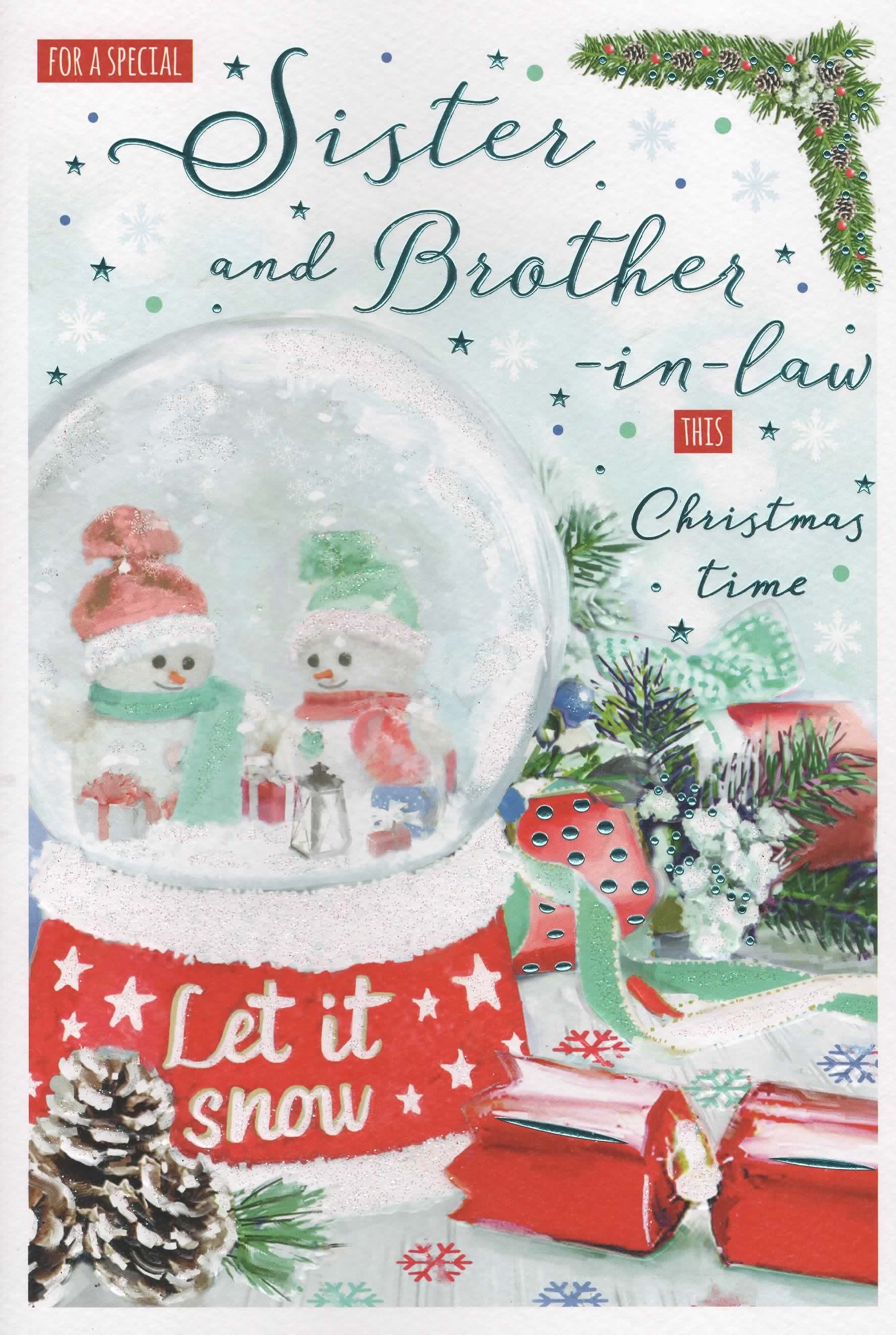 Verse reads: Happy Christmas wishes are being sent your way, it's time for festive fun and celebrating Christmas Day. May this special season you share bring you nothing less, than perfect days together filled with love and happiness. Merry Christmas to a special Sister and Brother-in-Law