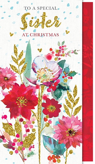 Verse reads: It's great to have a Sister who is lovely, just like you, A perfection combination of family and good friend, too... So have a Happy Christmas hope it's special through and through, A day that's simply magical, A day that's just like you. Christmas wishes for a special Sister