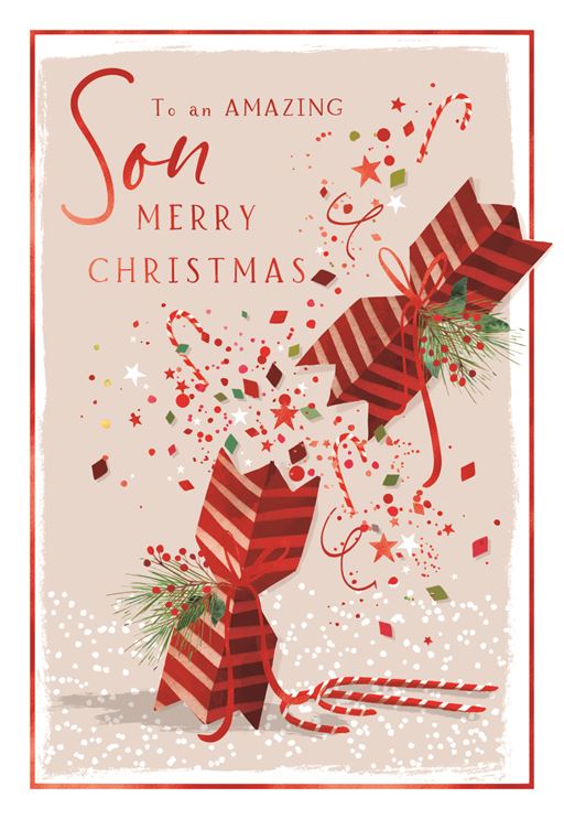 Son Christmas Card - Traditional - Christmas Cracker - Candy Canes - Holly