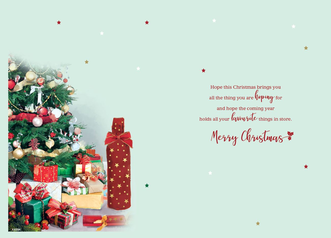 Verse reads: Hope this Christmas brings you all the things you are hoping for and hope the coming year holds all your favourite things in store. Merry Christmas
