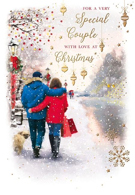 Verse reads: There's no time quite like Christmas with its warm and festive glow, For telling those we love so much the things we hope they know... So these warm and loving wishes intended for you two, Are not just for this Christmastime, They're yours the whole year through. Wishing a wonderful couple a very Happy Christmas